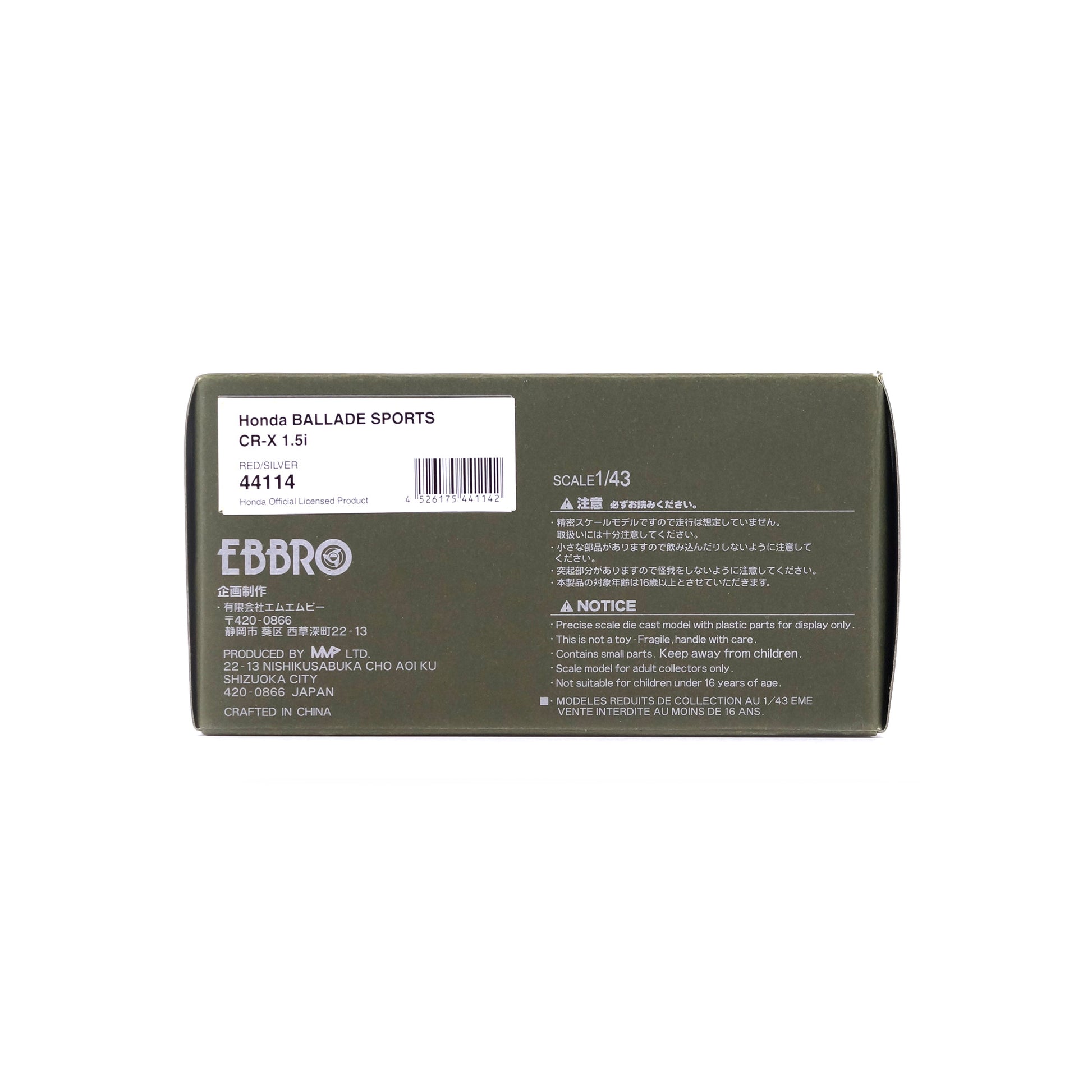 品 名:1/43 Honda BALLADE SPORTS CR-X 1.5i (RED/SILVER)