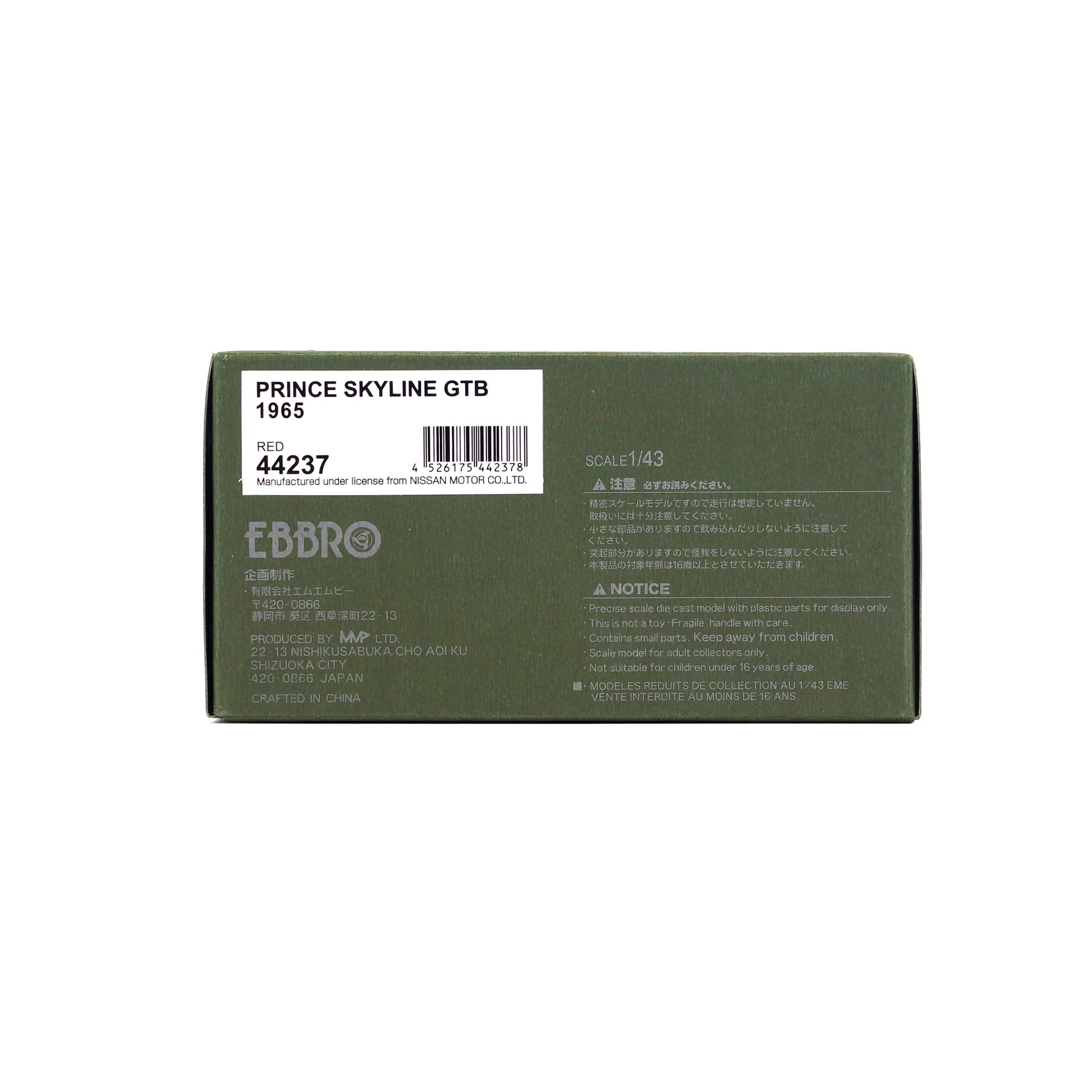 品 名:1/43 PRINCE SKYLINE GTB 1965 (RED)