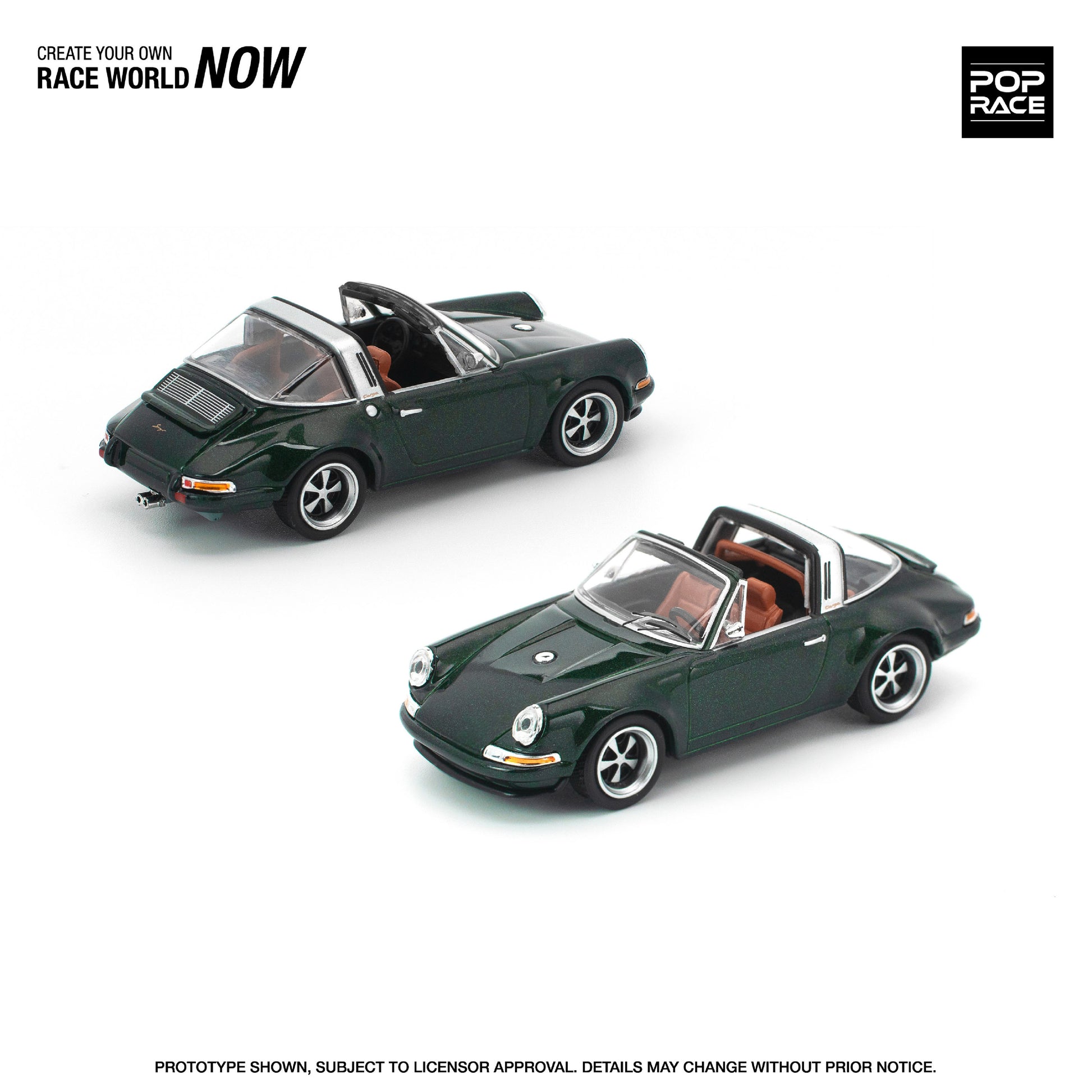 クラシックなタルガスタイルを現代的に再解釈した SINGER TARGA を、POP RACEが1/64スケールで精密再現。